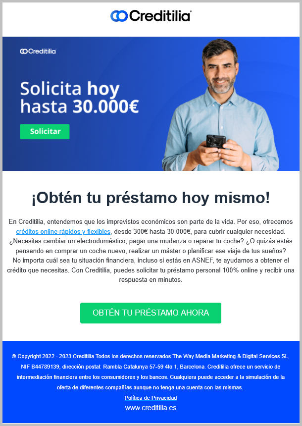 Podvodný email v ohľade bankových služieb. Hoci snaží sa tváriť dôveryhodne, je to obyčajný podvod, ktorý vám chce ponúknuť pôžičky pod zneužitou identitou banky, ale skôr prídete o peniaze.